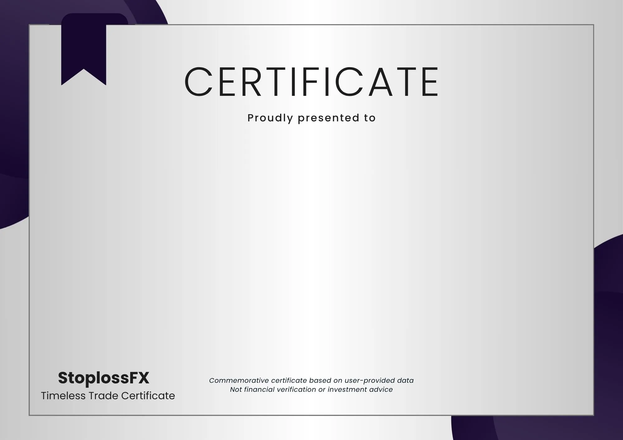 Each certificate captures your trading journey, every win, every loss, and every lesson learned along the way.
